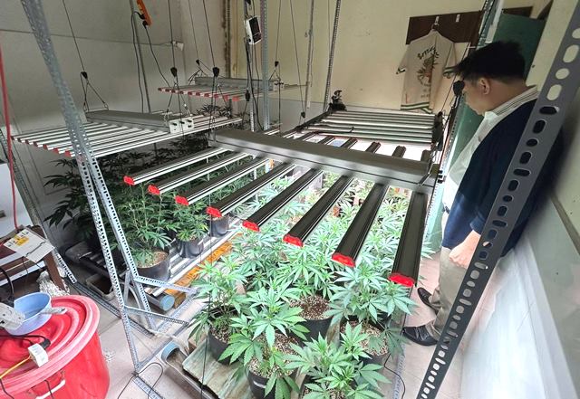 Tại đây, lực lượng chức năng bắt quả tang Đỗ Hữu Duy (SN: 2003) đang thực hiện hành vi phân chia gần 8 kg cần sa khô. Kiểm tra phía sau căn nhà, lực lượng công an phát hiện một “công xưởng” khép kín với nhiều cây cần sa đang xanh tốt, được trang bị hệ thống chiếu sáng và tưới tiêu tinh vi như một phòng thí nghiệm nông nghiệp công nghệ cao.