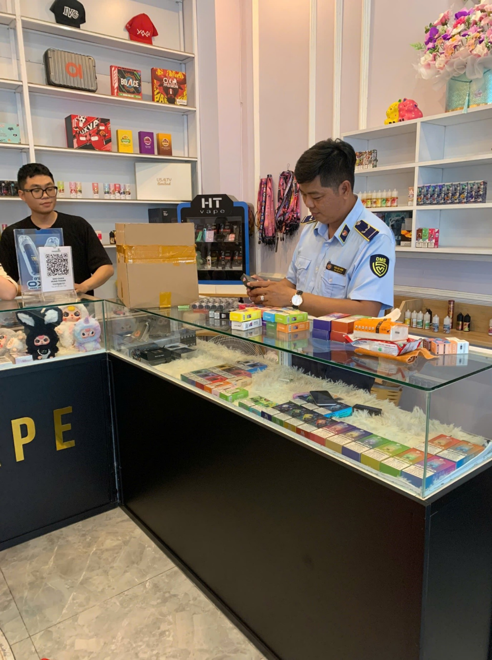 Bà T.T.B.S, đại diện Hộ kinh doanh HT và ông N.L.T đại diện Điểm kinh doanh Vape - Podsystem không xuất trình được hóa đơn, chứng từ liên quan đến số hàng hóa nêu trên.