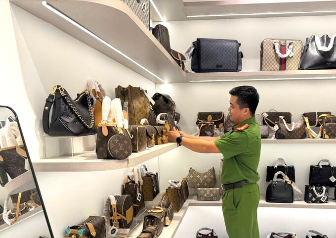 Tại thời điểm kiểm tra, công an phát hiện hơn 1.000 sản phẩm thời trang như quần áo, giày dép, túi xách... có dấu hiệu làm giả hoặc xâm phạm quyền sở hữu trí tuệ của các thương hiệu nổi tiếng đã được bảo hộ tại Việt Nam.