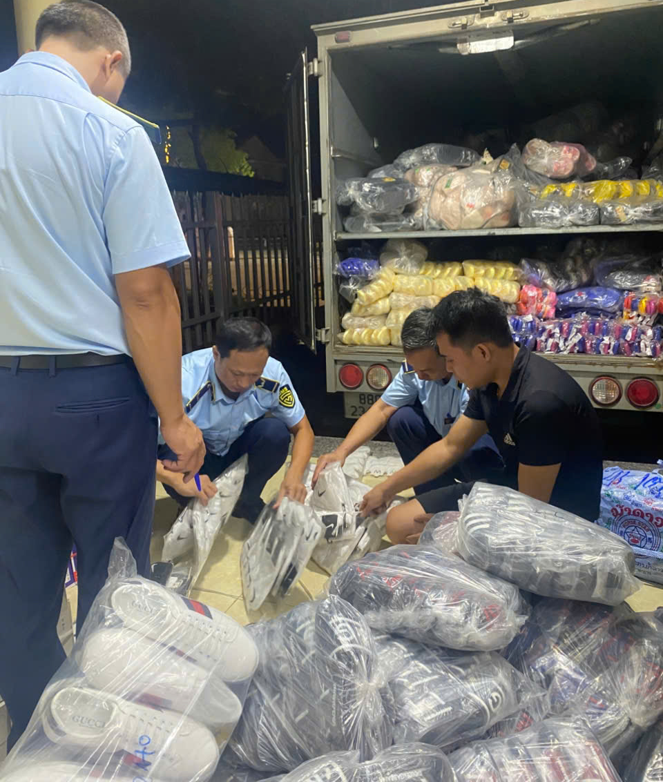 Quá trình khám phương tiện, Đội QLTT số 3 phát hiện trên xe đang vận chuyển: 135 đôi dép lê người lớn có dấu hiệu giả mạo nhãn hiệu D&G. 180 đôi tất chân người lớn nghi giả mạo nhãn hiệu Nike.